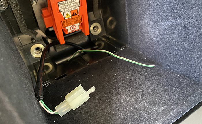 蓋を閉めてハーネスの噛み込みがないか確認