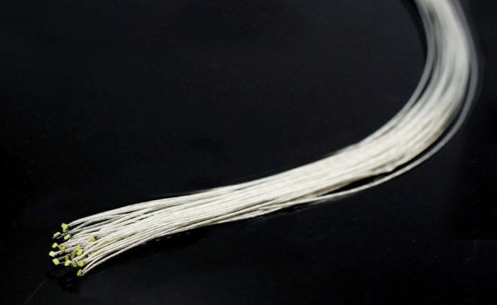 リード線部分にコーティング加工がしてあり、先端部分は銅線が出ています。