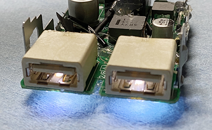 前述のLEDをこのUSBチャージャーの中に入れ込んで行きます♪
