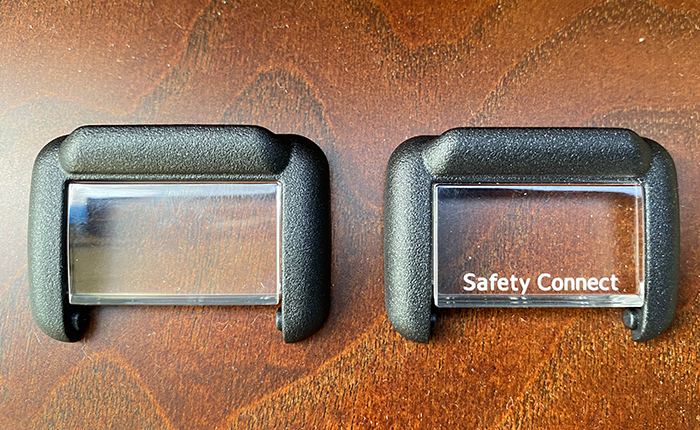 時が経ち、ネットオークションを徘徊していたら、国内仕様LC500のSOSスイッチ付きルームランプが出品されているのを、出品画像を見ているとスイッチ窓に「Safety Connect」文字が印刷されているのを発見!!