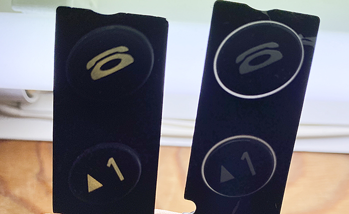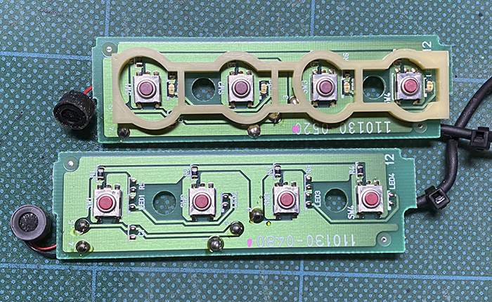 ボタンは、ドコモ純正はボタン部分が薄いグリーンの透過、デンソー製は透過しないタイプ。