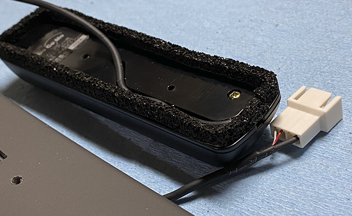 ハンズフリーマイクはドコモ純正(生産はデンソー)だと筐体がグレー、手持ちのデンソー(デンソーブランドで販売されていたもの)のハンズフリーマイクはブラックでロゴ無し。車内の雰囲気を重視するので、筐体はデンソーのハンズフリーをしようすることにしました。