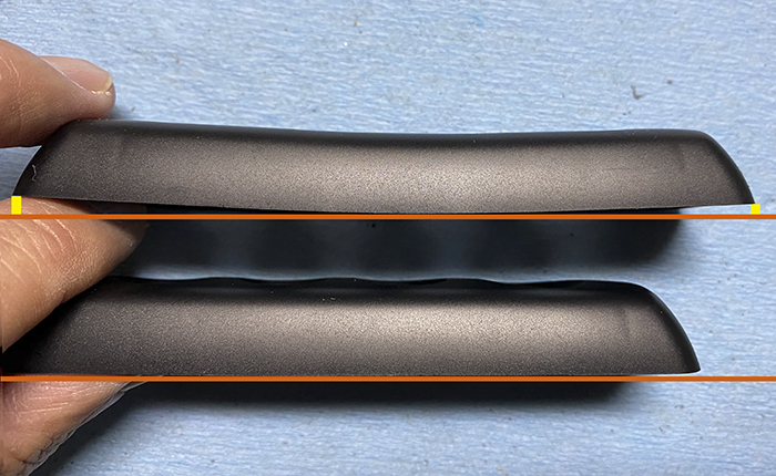 ピラーカバーは平坦に見えて、微妙な逆弧を描く感じになっています。