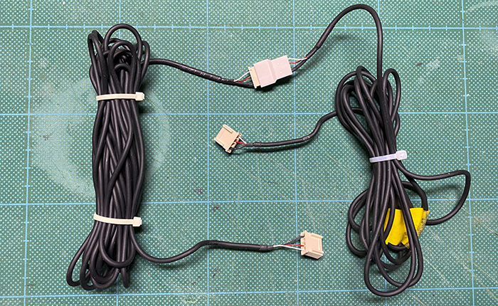 今回作成した延長ハーネス、元々の状態で結構な長さの余裕がありましたが、リヤドア端から、車両Bピラーを経由し、後席した部分を経由して、リヤセンターコンソールまでなので、事前に計測すると若干の長さ不足が判明、ハーネスは3芯なので、事前に3芯ケーブルを5m分購入して、①リヤドア内用、②Bピラーからセンターコンソール用の2つを作成、メンテナンスを考慮し途中にコネクター設置しました。