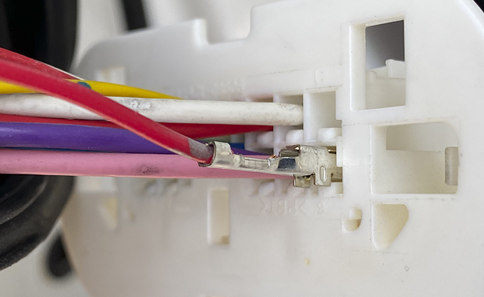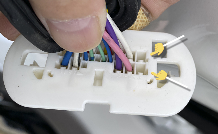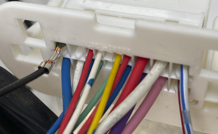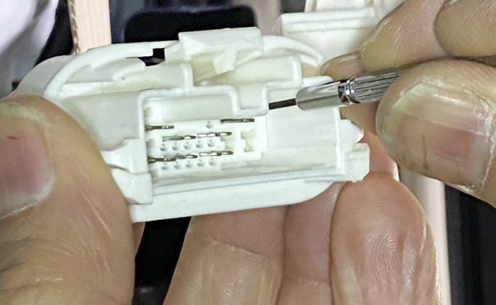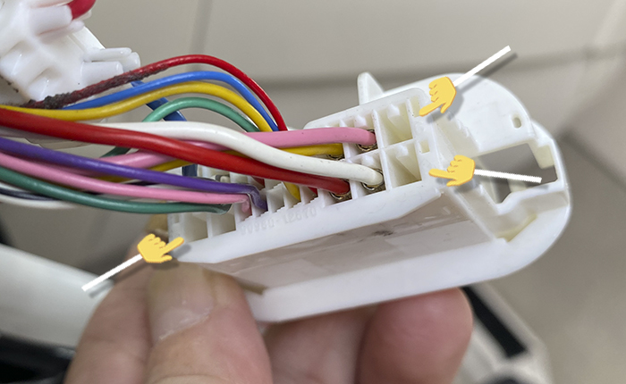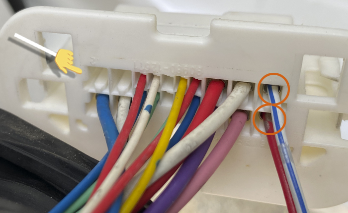 精密マイナスドライバーで端子ロックを解除して、地道に1本づつ差し替え。