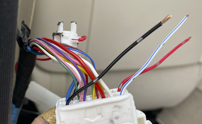 常時電源線があるので、バッテリーを解放した状態で作業。