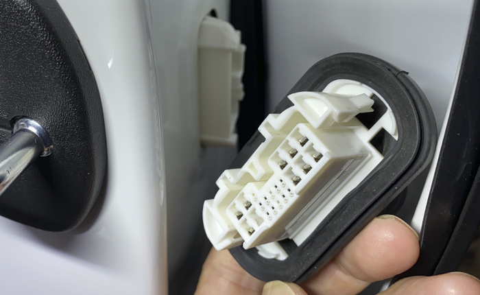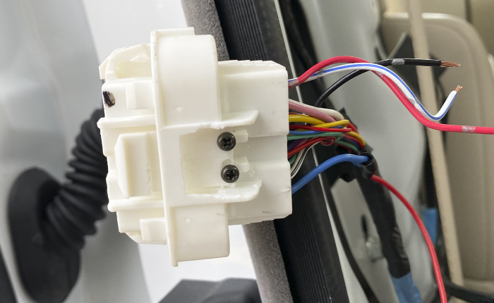 今回はハンズフリーボタンをドアに装着するので、ハーネスの延長とメンテナンスを考慮し