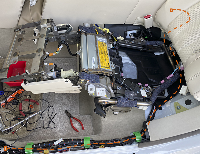 山場の作業を終えて、あとは車内のハーネス設置のみ。