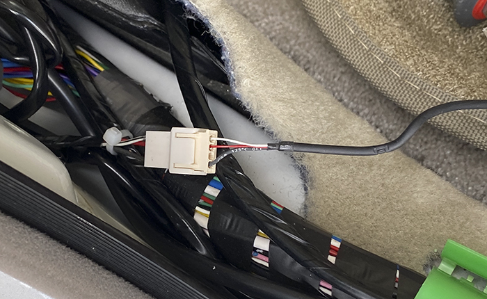 車両コネクターを利用したので、新たに車内側ハーネス接続のコネクターを設置