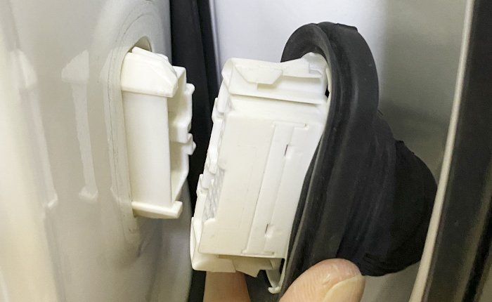①ドア側カプラーのブーツを捲る