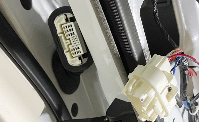 先程、ドア側のカプラーで行ったハーネス追加をこちらも施工。