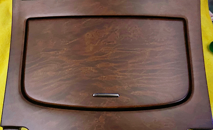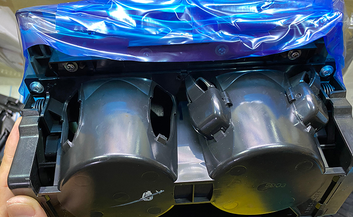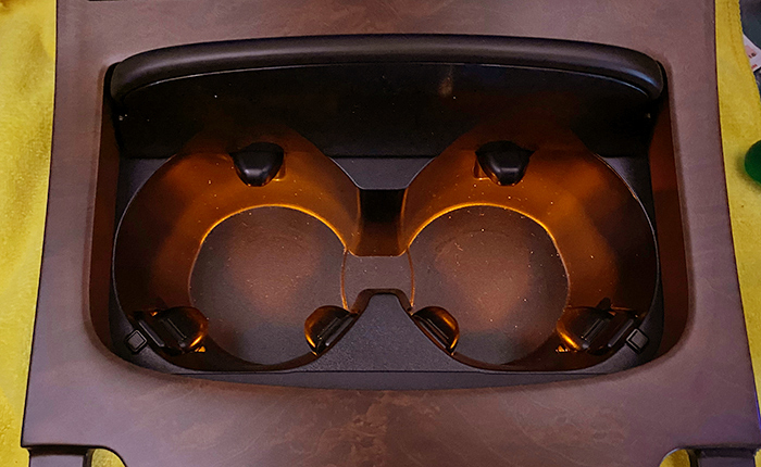 ドリンクホルダー部分を取り外し、ウッド部分に傷防止の保護テー部を貼り付け。