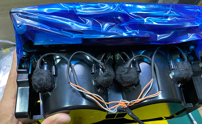 リード線の取り回しを最適なものにして車両取り付けに備えます。