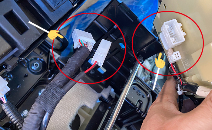センターコンソール純正コネクター(写真奥)と同じ方向にコネクターの向きを揃えます。