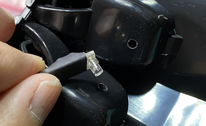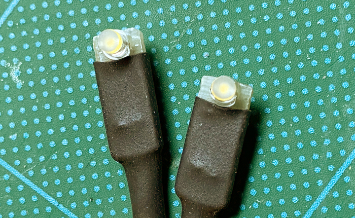 LEDは砲弾型のアンバーを使用し、レンズ前端は光の拡散を目的にベルトサンダーで削って平に加工。