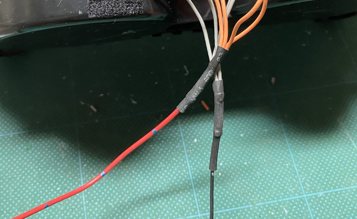 フロント同様に小さく切った基盤にLEDと抵抗、リード線をハンダつけし、熱収縮チューブで成形。