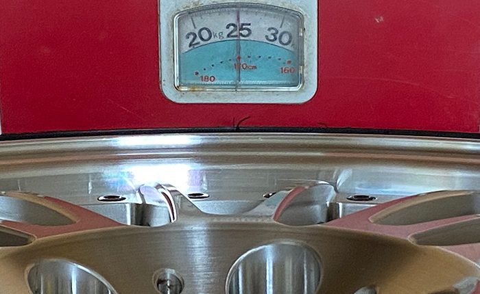 10系セルシオ以来の鍛造ホイール装着なので、重量がどれだけ違うか興味津々、純正19インチノイズリダクション(ブリジストン/レグノ装着)と重さの比較をした画像を掲載。