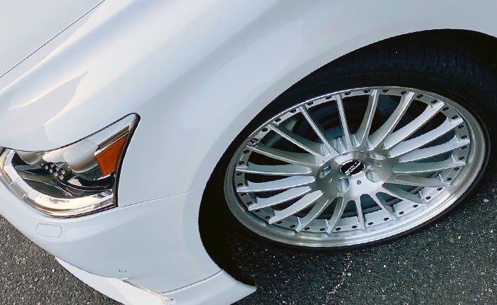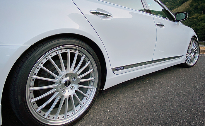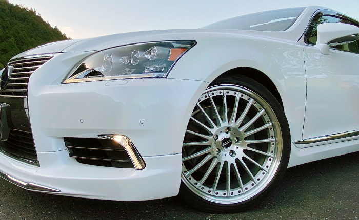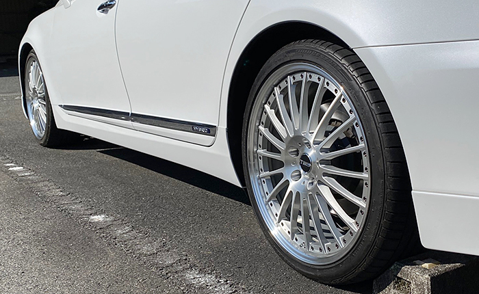 LSに21インチホイールを装着するならTWSの鍛造ホイールと決めていて、新品は手が出ないのでネットオークション探していた時に見つけたホイールになります。本当はTWSのワンピースホイールを探していたのですが、デザインと仕上げが気に入ったので購入に至りました。今では「これが正解!!』超〜のつくほどお気に入り♪