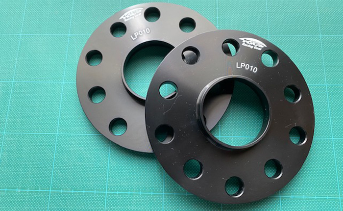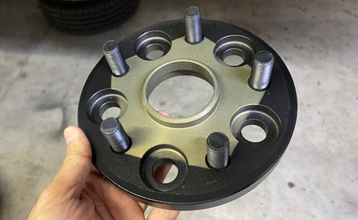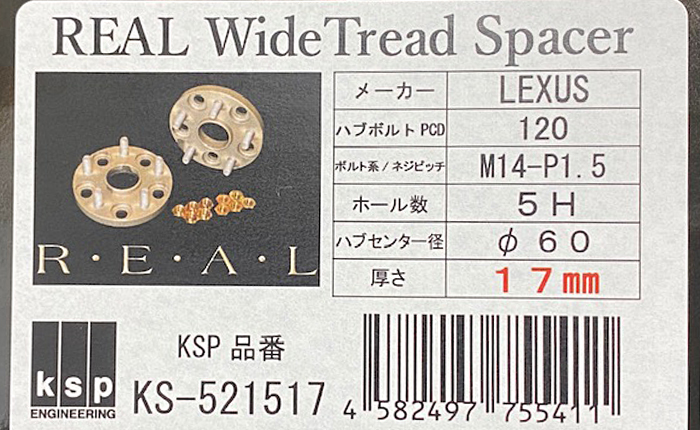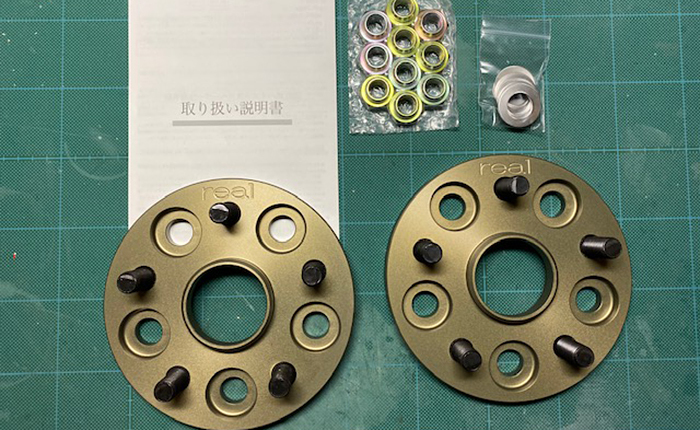 ツライチはあまり好きではなく、若干のツラウチが好みなので、フロントはロングハブボルト打ち替えと10mmのスペーサー、リヤはワイドトレッドスペーサー17mmを装着することに。
