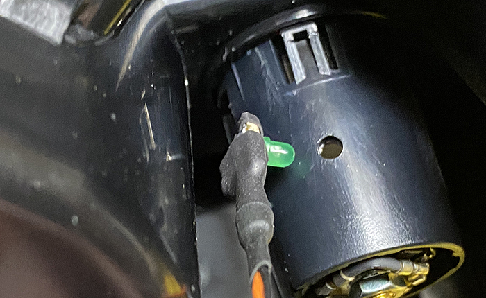 指差しマークが示しているのが取り付けたLEDになります。