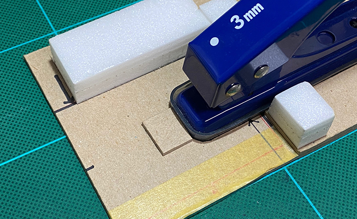 これ作業の為に作った、こだわりのmitsuaki自作穴開け専用治具