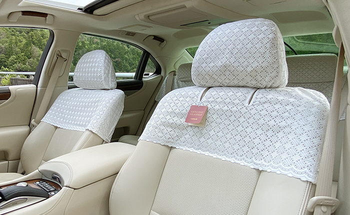 新車についているタグが何色のタグがついているか知りませんが、私のLSはメローホワイト内装なので、挿し色としてワインレッドを選択し高級感を演出。