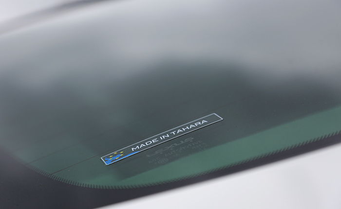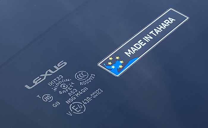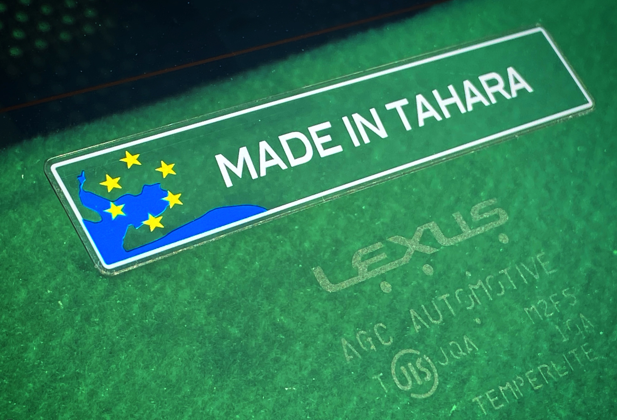 モチーフはトヨタ・アベンシスの「MADE IN EUROPE」ステッカー、デザインについて、ステッカー左端にある地図は田原工場のある渥美半島をデザイン、その周囲を星で囲んでいます。