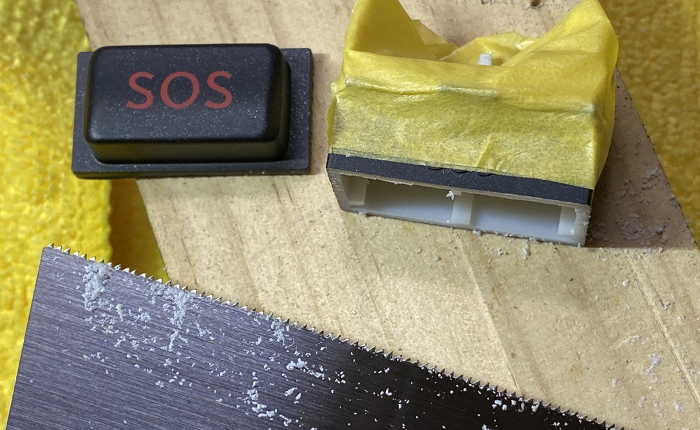 模型用のレザーソーでスイッチの頭部分の切り出し、