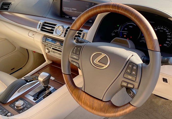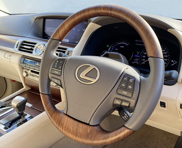 スイッチベースのトリムカラー部分は、LS600hシリーズは革張♪