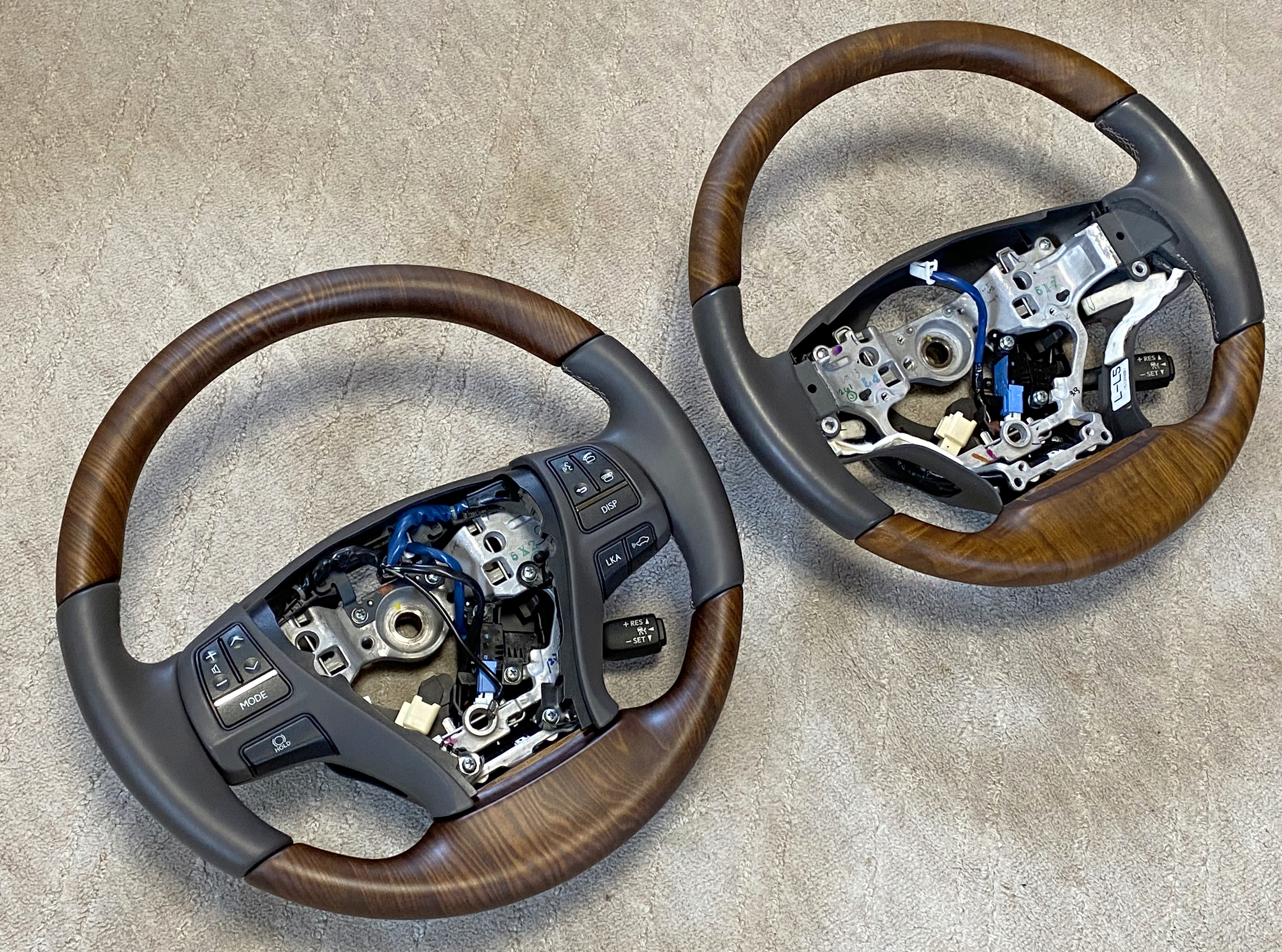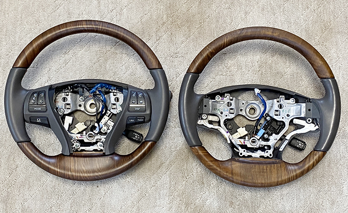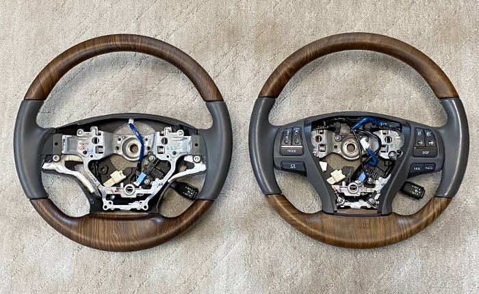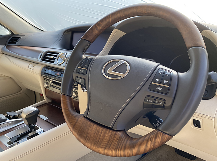 購入したLSのステアリング、コンディションはそれなりに良かったのですが、革のテカリが少し気になっていました。そんな時にネットオークションでほぼ新車外しのステアリングが出品されていて、近県出品だったこともあり現物を見て本当にコンディションの良いステアリングだったので購入。