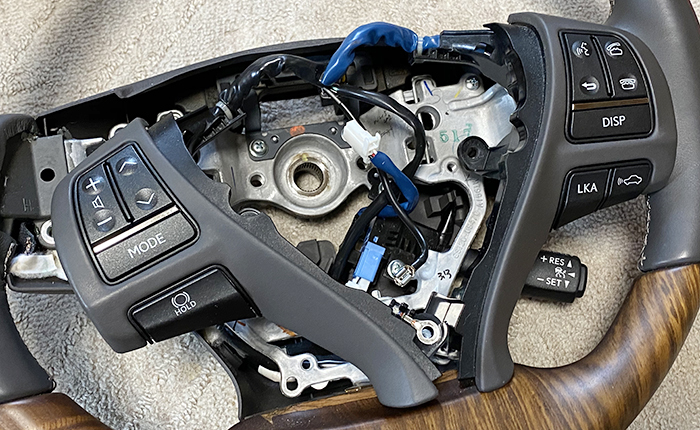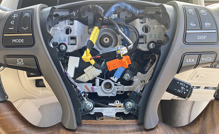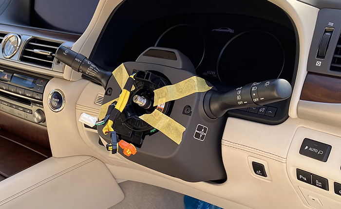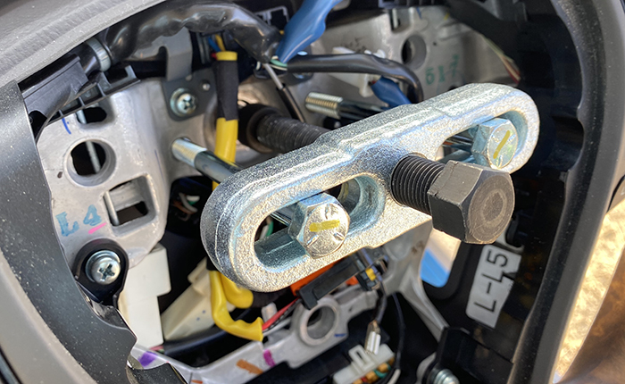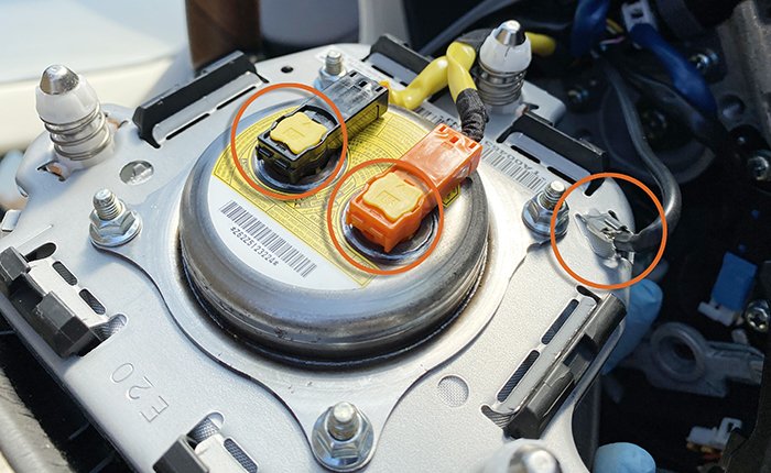 ステアリング交換でポイントになるのがエアバックの取り外し。