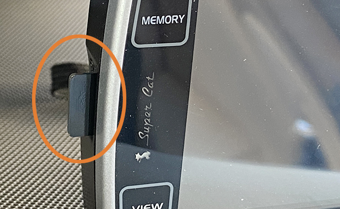 運転席ピラー横(スピーカーネットの一番前)に台座を貼り付け固定しています。